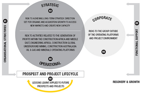 04. OPERATIONAL RISK MANAGEMENTOperational risk is evaluated as a hurdle to achieving planned profits within the Construction Africa and Middle East, Engineering Africa, Construction Global Underground Mining, Construction Australasia Oil & Gas and Minerals operating platforms.