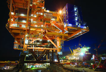 The engineering, construction and installation project entailed transportation and installation of the Angel topside module, weighing about 7 500 tonnes. The CAJV chartered the HLV Black Marlin from Dockwise to carry out the transport and installation of the topside module. The workscope included additional hook-up work for the module to the pre-installed jacket. To be installed by others, the client’s facilities incorporate a 6 500 tonne launched steel jacket with grouted piles and a 5 200 tonne integrated deck tied to three subsea wells.