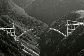 Bloukrans was constructed by the free suspended cantilever system. That is, every fourth segment - each averaging 5.25 metres in length - is tied back by the BBR suspension cables. This is the first time that the BBR system of prestressing was used for this application