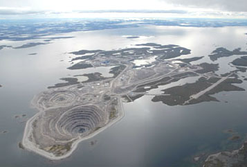 The Diavik Diamond Mine, operated by Diavik Diamond Mines Inc. and owned by Rio Tinto and Harry Winston Diamond Corporation, is located in the Northwest Territories at Lac de Gras. The mine moved from open pit mining methods to underground mining in 2010.
